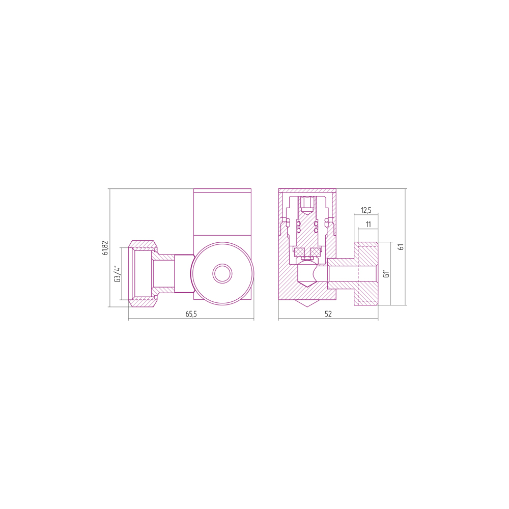 00-1302-0134 Вентиль 3D левый под шестигранник 1"ш-3/4"г