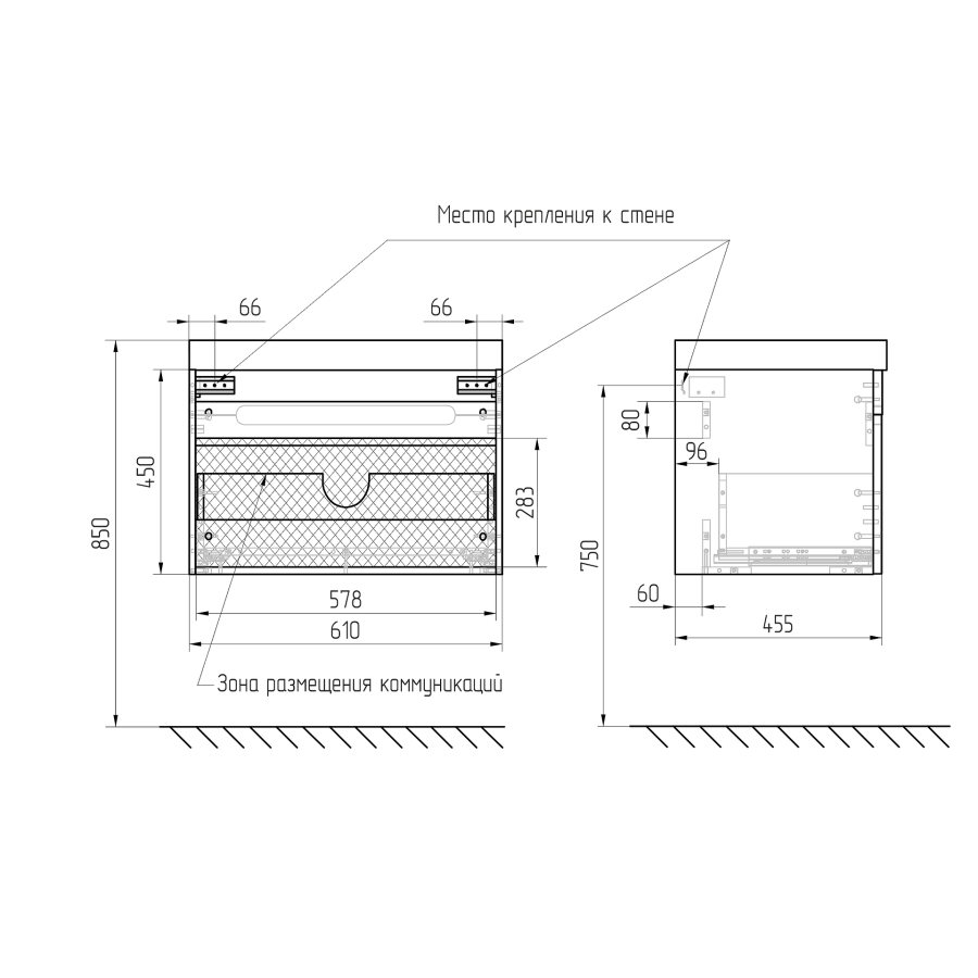 Тумба с раковиной AVS Эстель 60 белая