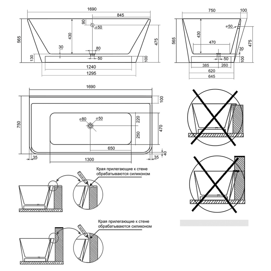 Ванна из искусственного камня Aqua de Marco Dante 170x75 белая