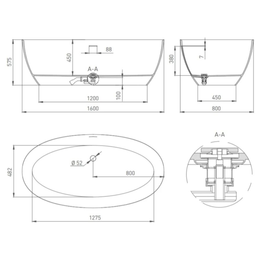 Ванна из искусственного камня Salini Alda S-Stone 160х80 белая матовая, с донным клапаном