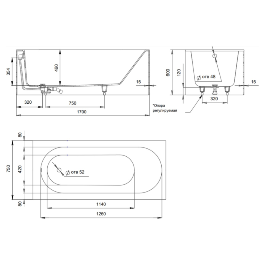 Ванна из искусственного камня Salini Fabia S-Sense 170х75 белая матовая, с ножками и донным клапаном