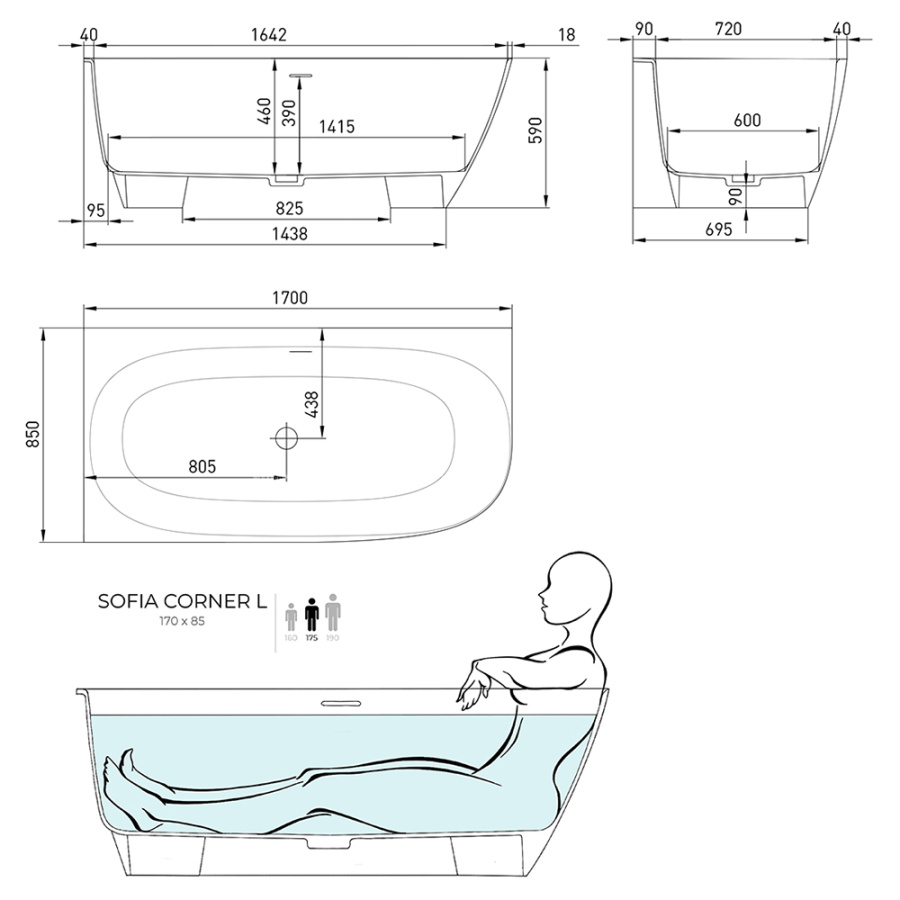 Ванна из искусственного камня Salini Sofia Corner S-Sense 170x85 L белая