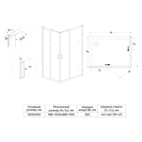 5. Прямоугольные и квадратные душевые уголки