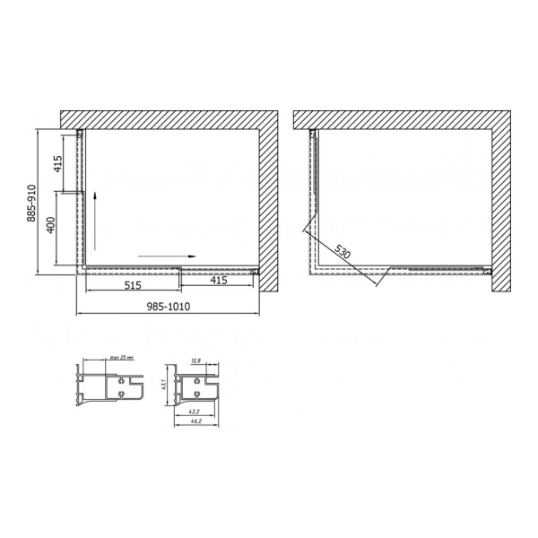 Идеальны для небольших ванных комнат. Двери открываются по направляющим, что экономит место и позволяет пользоваться уголком, не загромождая пространство.